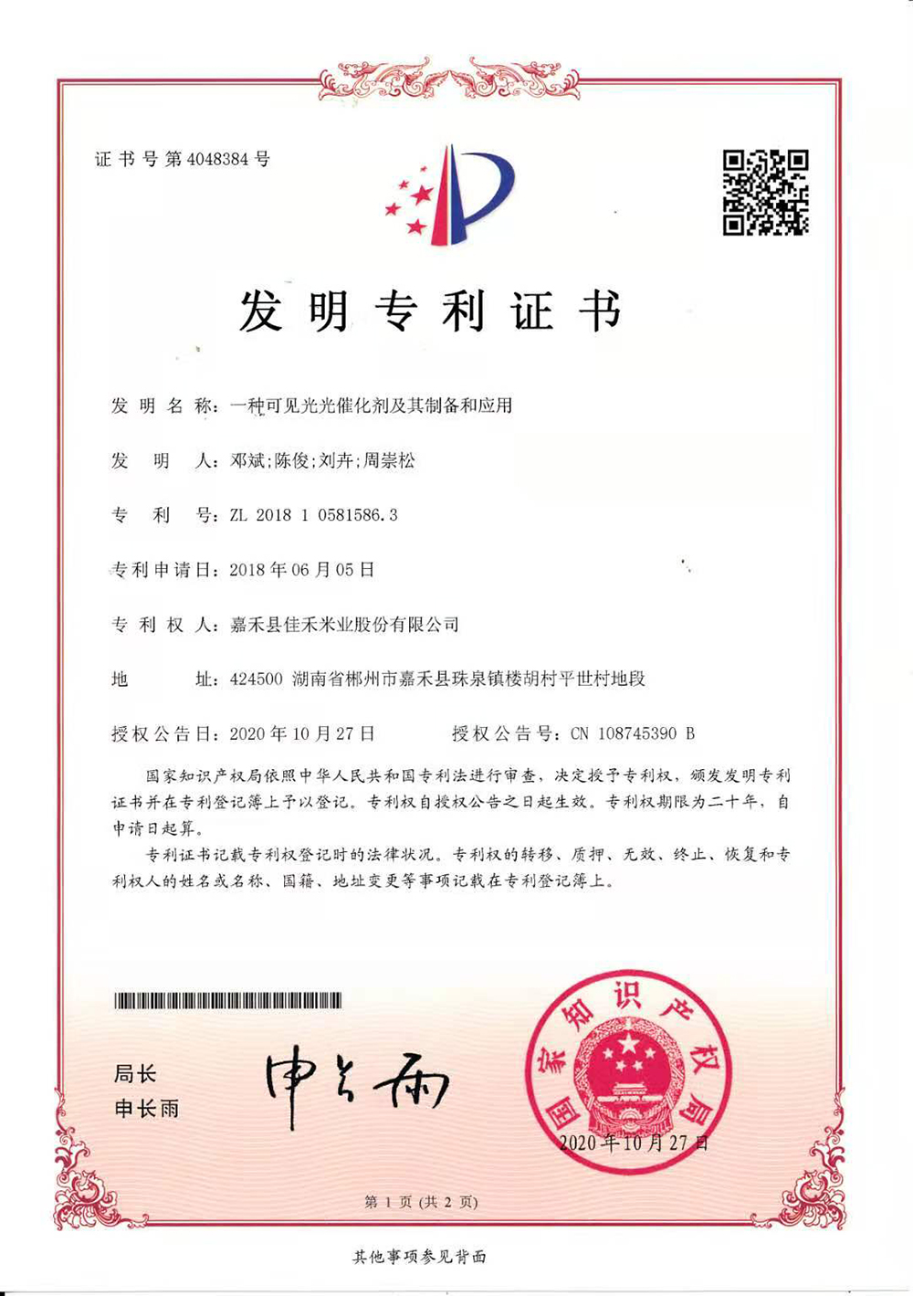 首页荣誉资质一种可见光光催化剂及其制备和应用